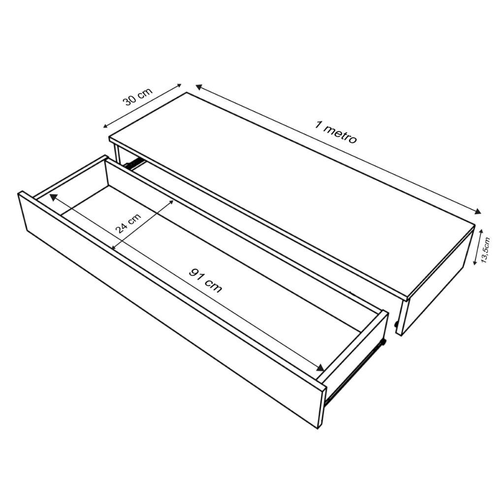 1 Gaveta Suspensa 100cm larg x 13,5cm alt x 30cm prof